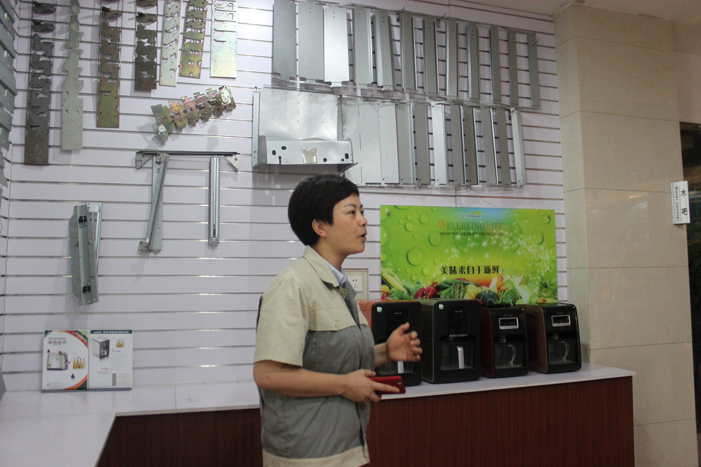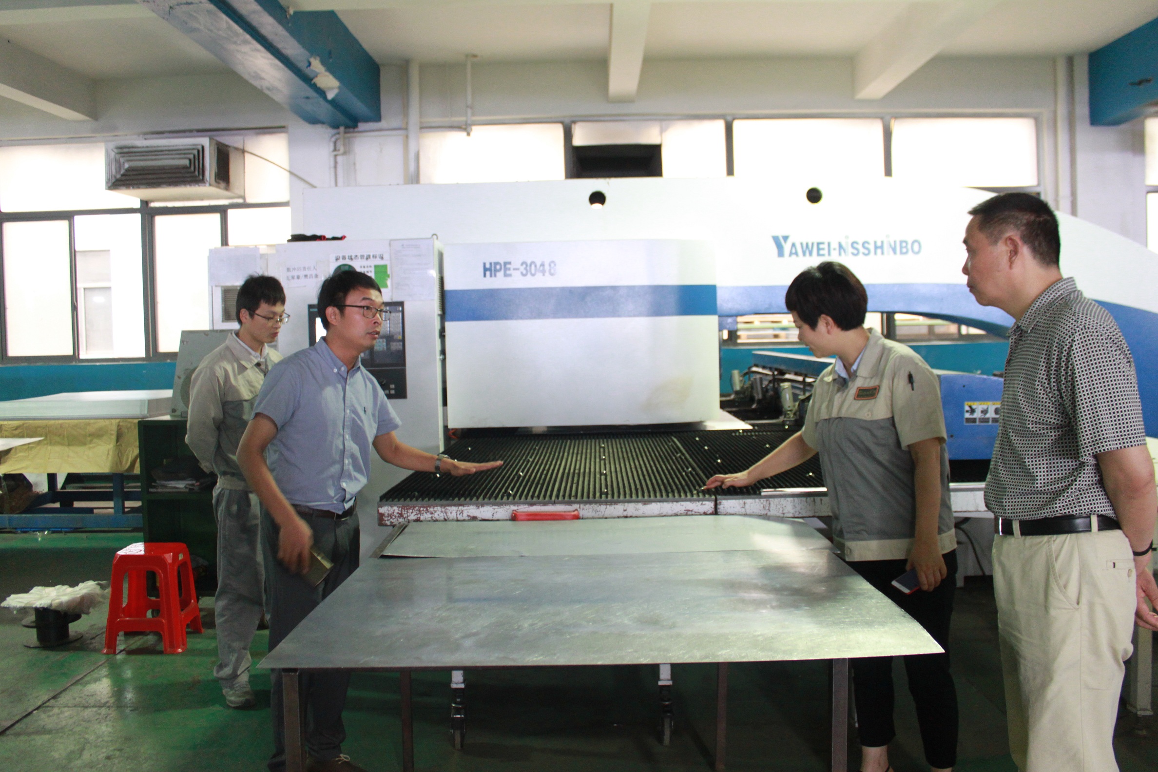 參觀的第三站:鈑金加工部,由部長助理李大奎帶隊,李助理詳細(xì)介紹了每一個鈑金件的切割下料、沖裁加工、彎壓成形等工序,并在設(shè)備上實際操作了一番。