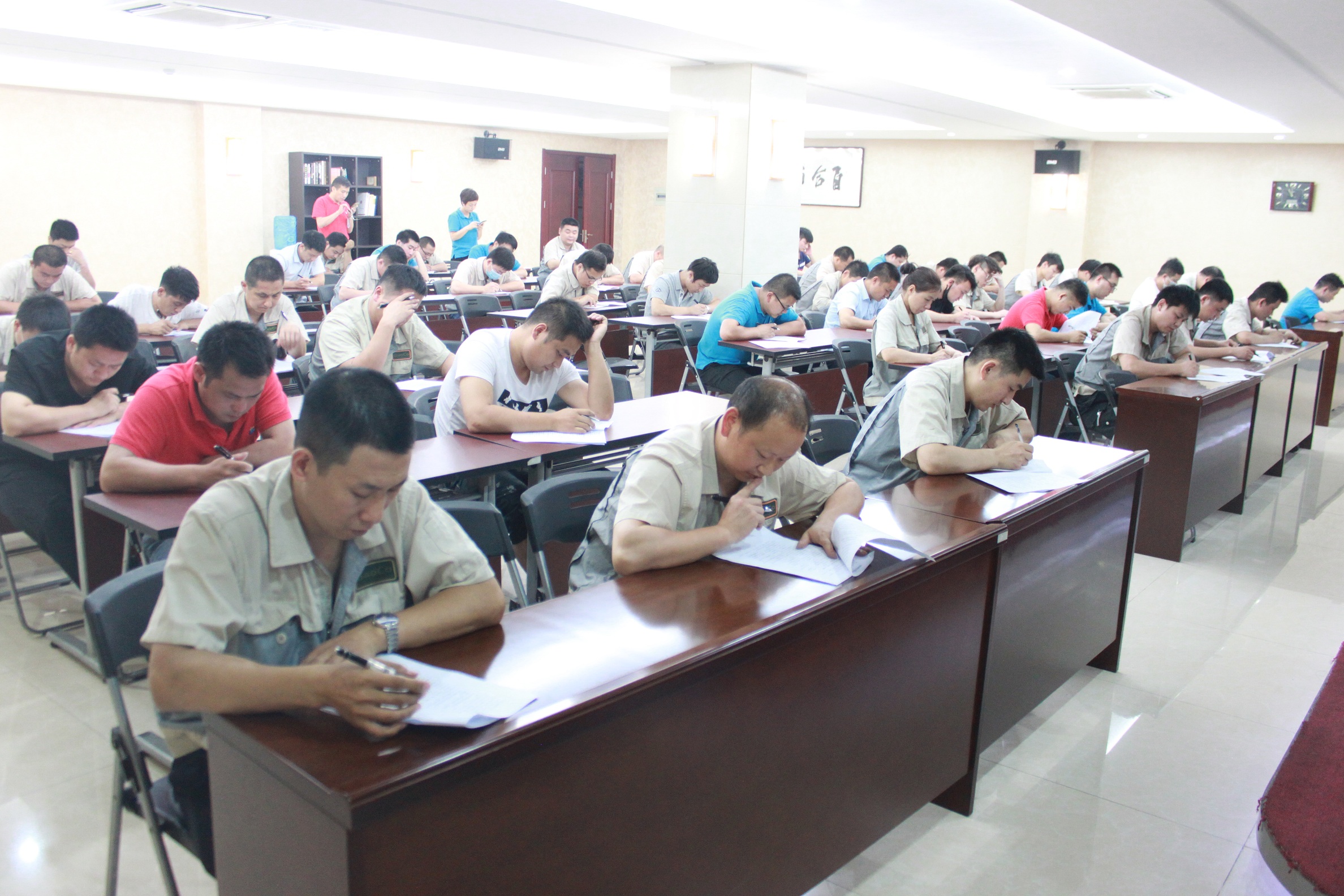 考試的內(nèi)容均是工作中常接觸到的,如:什么是5S,班組長一天的工作計劃是什么?六步法分為哪六步法?目標管理總體中7項要求是什么?設(shè)備目視化管理的7個要點及對應(yīng)的方法是什么?……其實工作多留意、善總結(jié),就不會那么難了,學習是為了掌握更多的知識,考試是為了鞏固所學到的知識,我相信通過這次學習和考試,大家一定會有更高的提升,在自己的工作崗位上,也會有所突破,大顯身手。